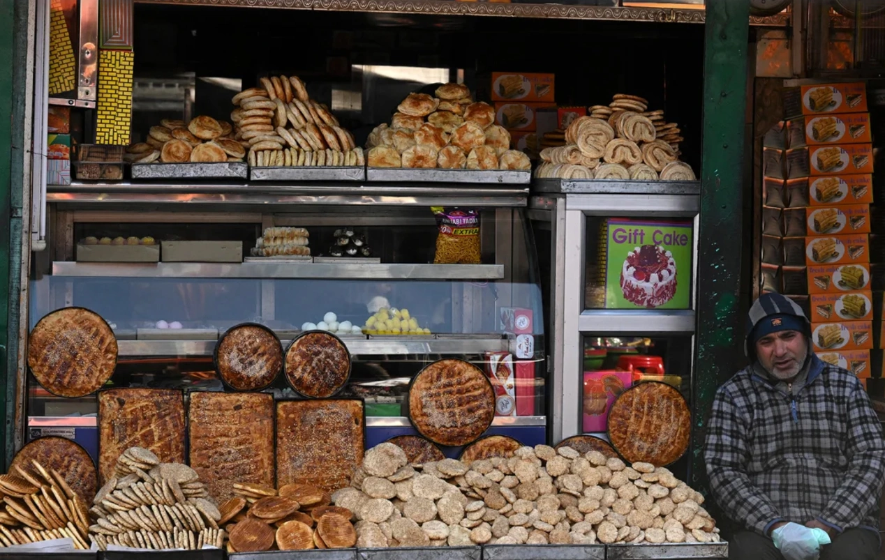 Tiệm bánh mì bày bán các loại bánh ở Kashmir. Ảnh: AFP